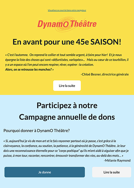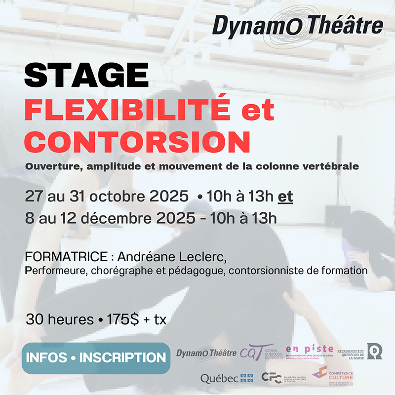 Compagnie de théâtre montréalaise d’envergure internationale, DynamO Théâtre se spécialise dans la recherche, la création et la diffusion de spectacles de Théâtre de mouvement acrobatique et de jeu clownesque.